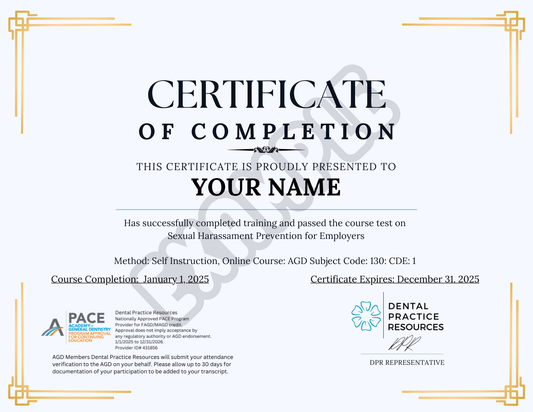 SEXUAL HARASSMENT - CERTIFICATE UPON COMPLETION -EMPLOYER VERSION